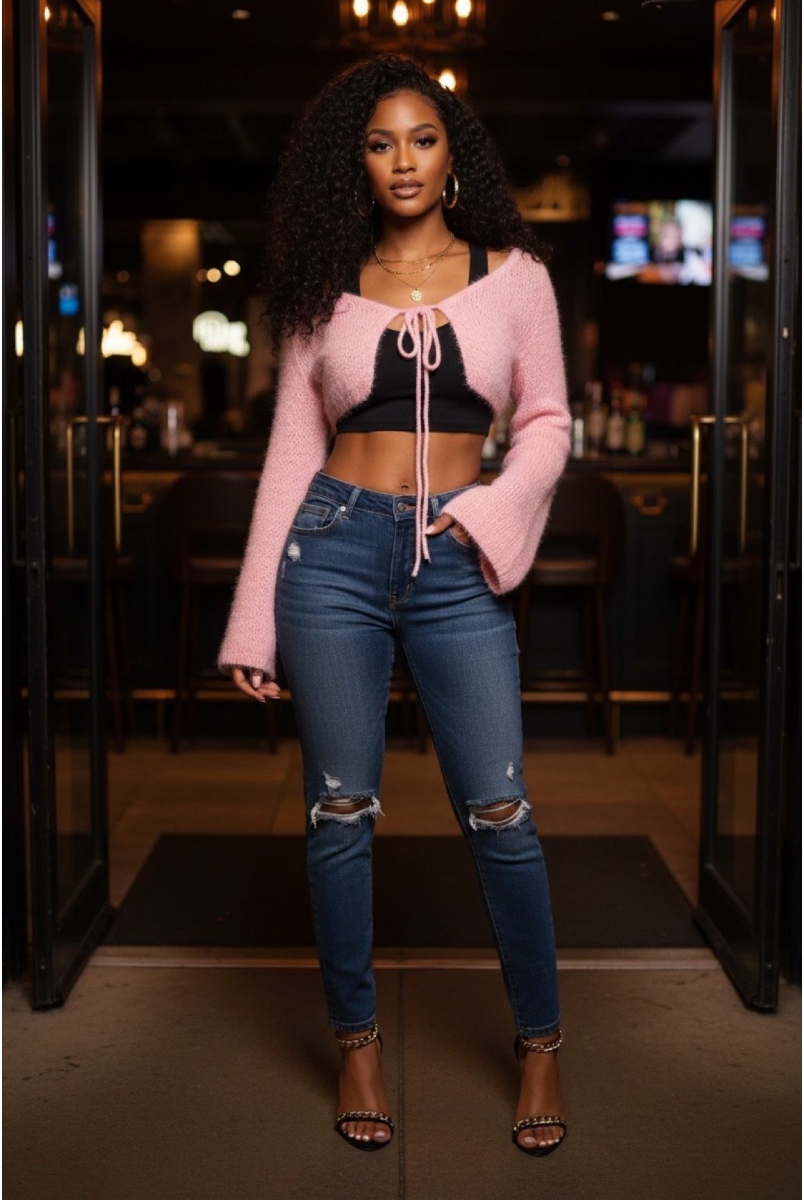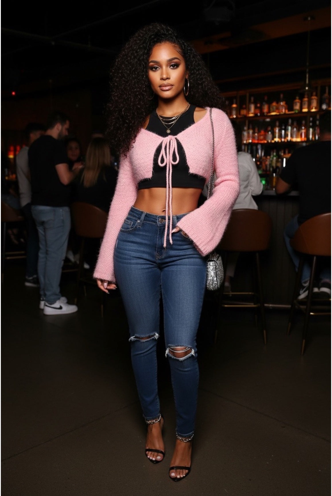 Give ‘em something to talk about with the Different Vibe fuzzy knit top — where cozy meets cute. This cropped sweater is soft, stretchy, and made to make a statement. Designed with long sleeves and a single front tie closure, it’s the perfect balance of flirty and comfortable. Whether you’re dressing it up with heels or keeping it casual with denim, this top serves looks from day to night.