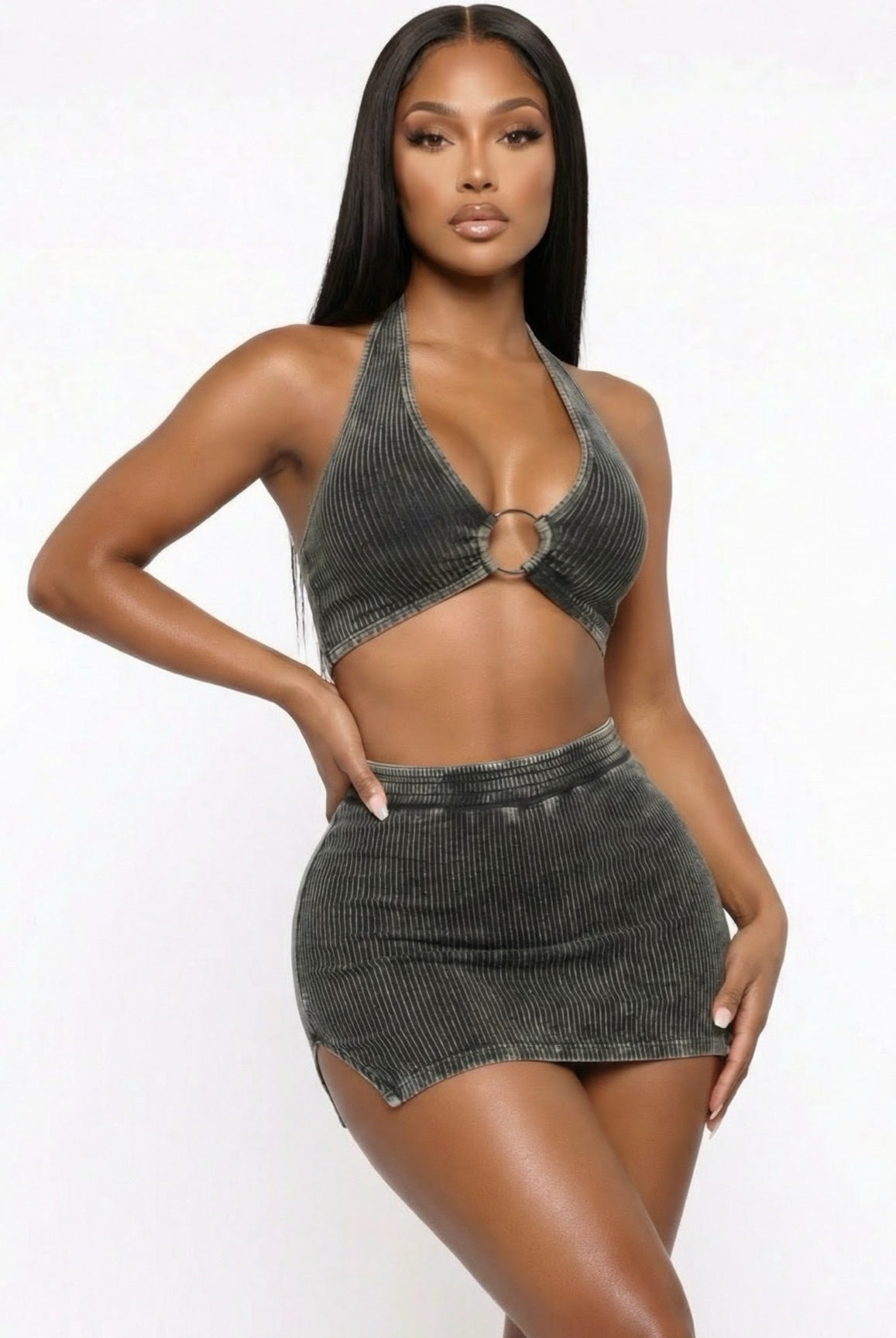 Turn heads in the Keeper Romper — a sporty yet sexy one-piece made to show off your curves. Featuring a halter neckline with a bold front O-ring cut out detail, this ribbed romper hugs your body in all the right places. The soft stretch cotton blend keeps it comfortable while serving confident, baddie energy. Perfect for day parties, vacations, or stepping out on a warm night.